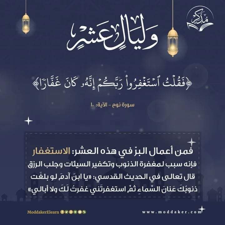الليالي العشر : المراد بها عشر ذي الحجة . كما قاله ابن عباس ، وابن الزبير ، ومجاهد ، وغير واحد من السلف والخلف . وقد ثبت في صحيح البخاري ، عن ابن عباس مرفوعا : ” ما من أيام العمل الصالح أحب إلى الله فيهن من هذه الأيام ” – يعني عشر ذي الحجة – قالوا : ولا الجهاد في سبيل الله ؟ قال : ” ولا الجهاد في سبيل الله ، إلا رجلا خرج بنفسه وماله ، ثم لم يرجع من ذلك بشيء ” .