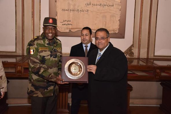وفي نهاية الزيارة قام ا.د عبد الفتاح باهداء درع الجامعة التذكاري وكتاب تاريخ قصر الزعفران لسيادة اللواء ا.ح خالد توفيق