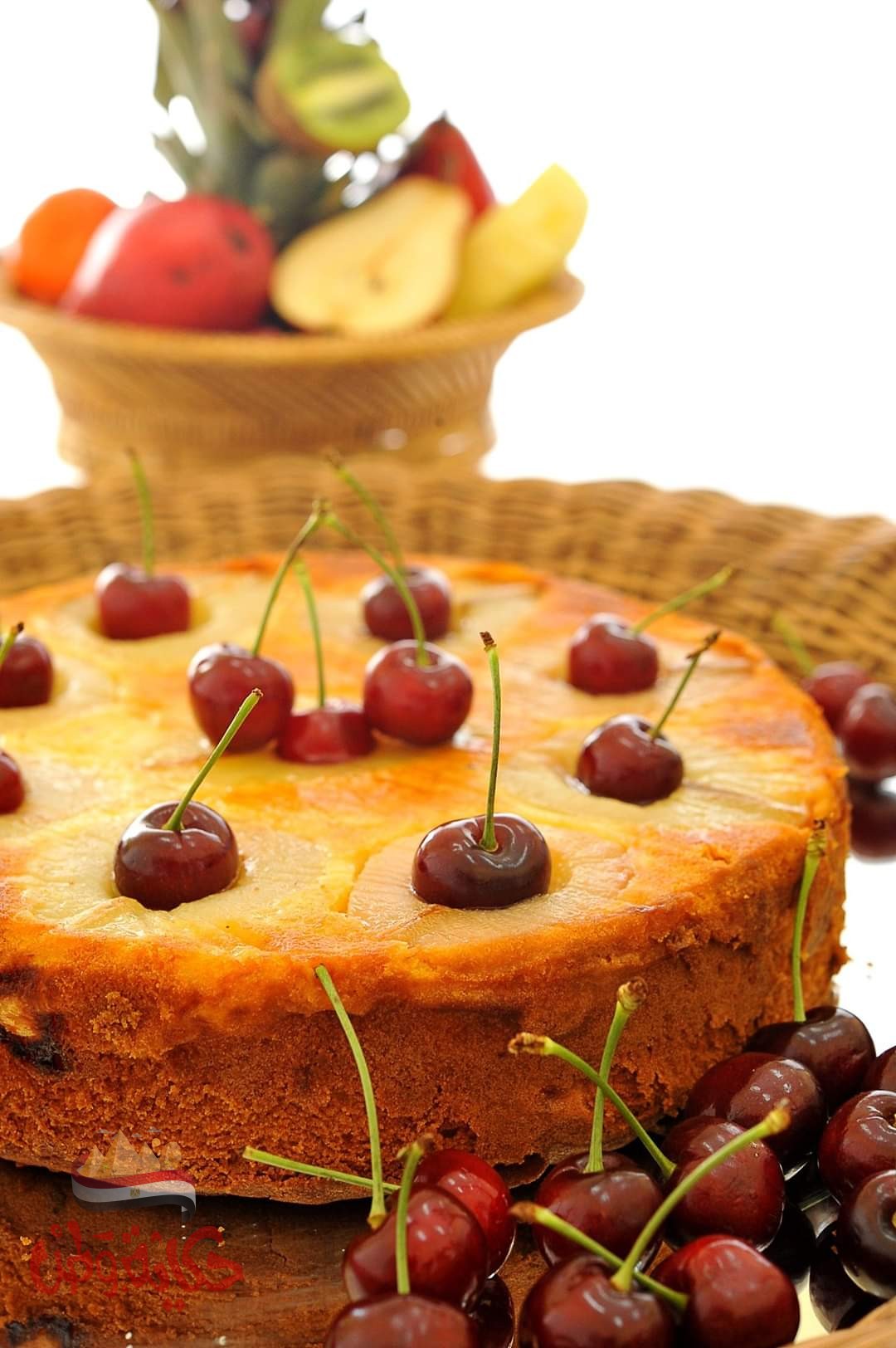 – يُترك الكيك ليبرد قليلاً، ثم يُقلب على شبكة معدنية حتى يبرد قليلاً (مع مراعاة أن تكون ناحية الأناناس لأعلى).
