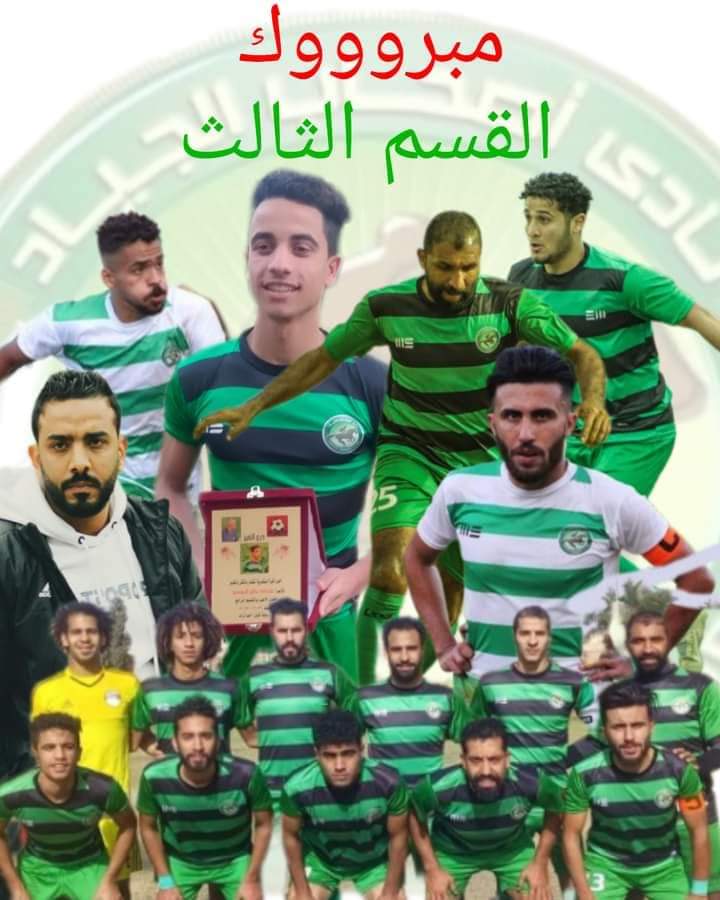 صعود الفريق الاول لكرة القدم لنادى أصحاب الجياد لدورى قسم الدرجة الثالثة بعد تغلبه على فريق دهميت الشرس بنتيجة ٢_١ بدورة الترقي