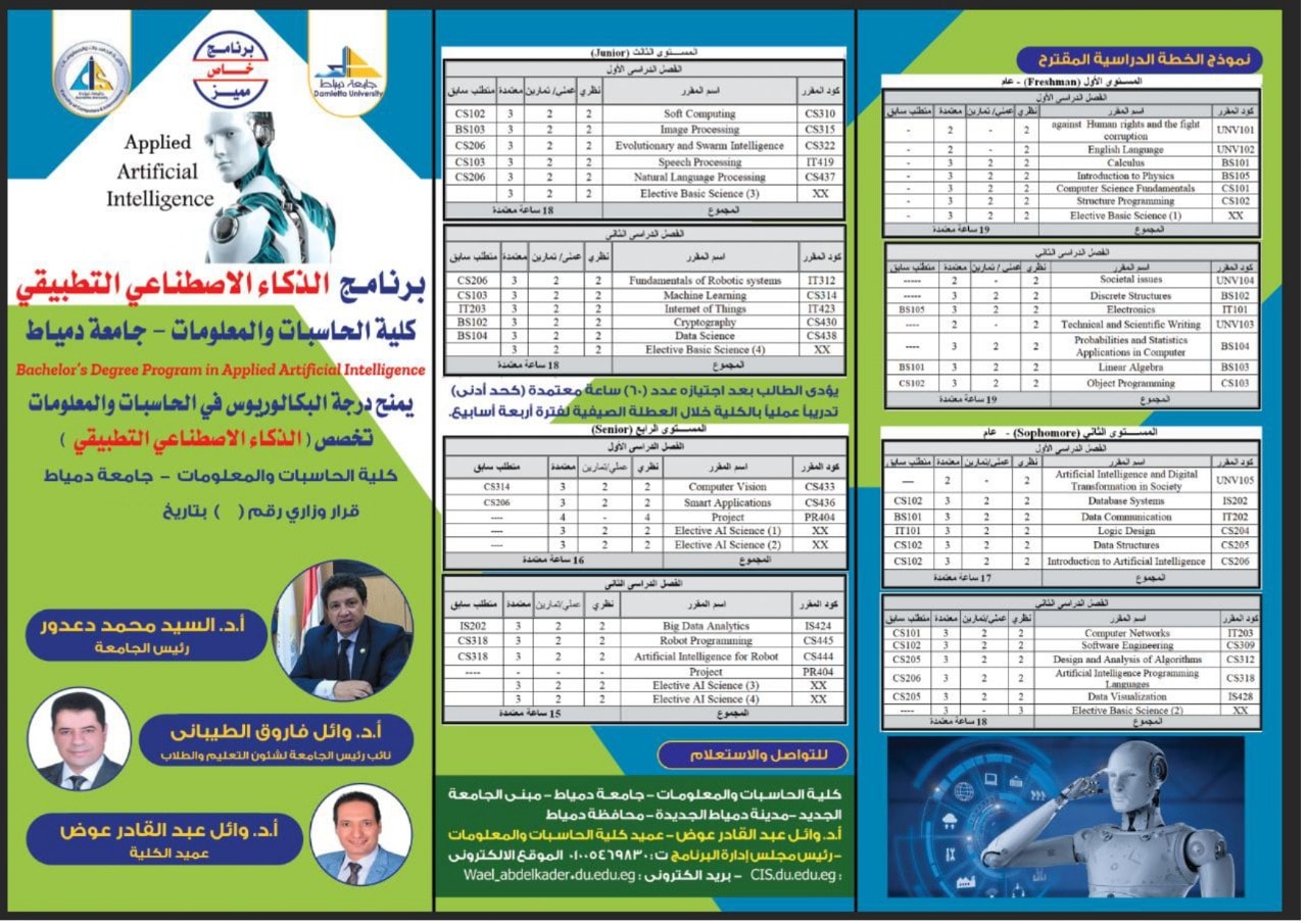 صدق اليوم المجلس الأعلى للجامعات على قرار هيئة المكتب و لجنة قطاع الحاسبات و المعلومات بتضمين البرنامج المميز الذكاء الاصطناعي التطبيقي Applied Artificial Intelligence