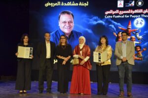 تسلمها عنه دكتور طاهر عبد العظيم. وهو من كبار مصممي العرائس بمصر والعالم، وقام بتصميم عرائس أوبريت الليلة الكبيرة، كما قام بإخراج وتصميم عرائس رائعة اخرى من عروض العرائس؛ عرض حمار شهاب الدين، وقام بتصميم العديد من عرائس المسرح، وتعلمت على يديه الكثير من الأجيال وفناني العرائس.