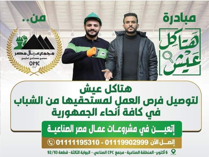 مبادرة هتاكل عيش توفر فرص عمل للشباب بعد توسعات استثمارات مجمع عمال مصر