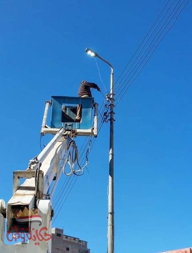 إزالة لافتات إعلانية من على أعمدة الإنارة بشارع ٦ أكتوبر بالمحمودية وتركيب خلية ضوئية جديدة لمحول قصر الثقافة بالمحمودية .