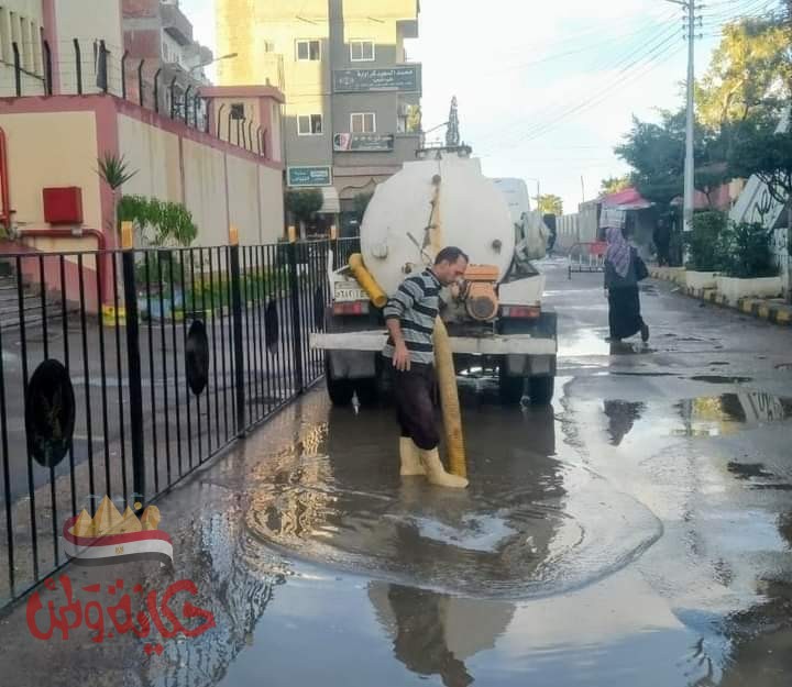 متابعة سحب مياة الأمطار بمنطقة ( كهرباء العطف – صبري القاضي – الثورة – ترعة صدقي – المرور – المستشفى العام ) .