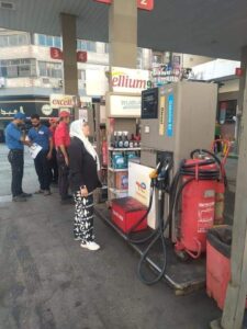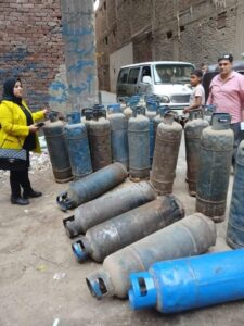عن الأسعار والبيع بأزيد من السعر الرسمي وعدم وجود ترخيص او شهادة صحية كما تم تحرير ٣٦ محضر فى مجال البنزين ومستودعات البوتاجاز شملت ضبط ٥٠٠ لتر بنزين ٨٠ وتصرف ١٠ الاف لتر بنزين ٨٠ وضبط ١٠٠٠لتر سولار و٦٨اسطوانة بوتاجاز تجارى و٧٠ اسطوانة بوتاجاز منزلي.