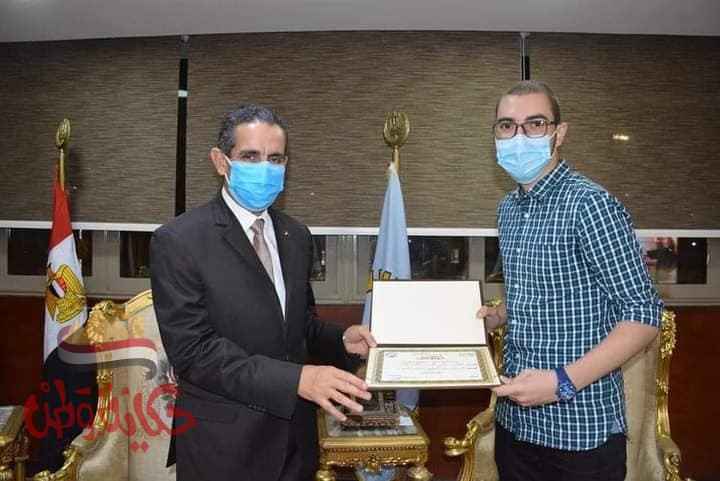 وفي نهاية المقابلة قام السيد المحافظ بتكريم الطالب محمد علي ووالدته مؤكدا أن مكتبه مفتوح في أي وقت له ولغيره من الشباب المتميز الذي يكافح ويصر على تحقيق أحلامه.