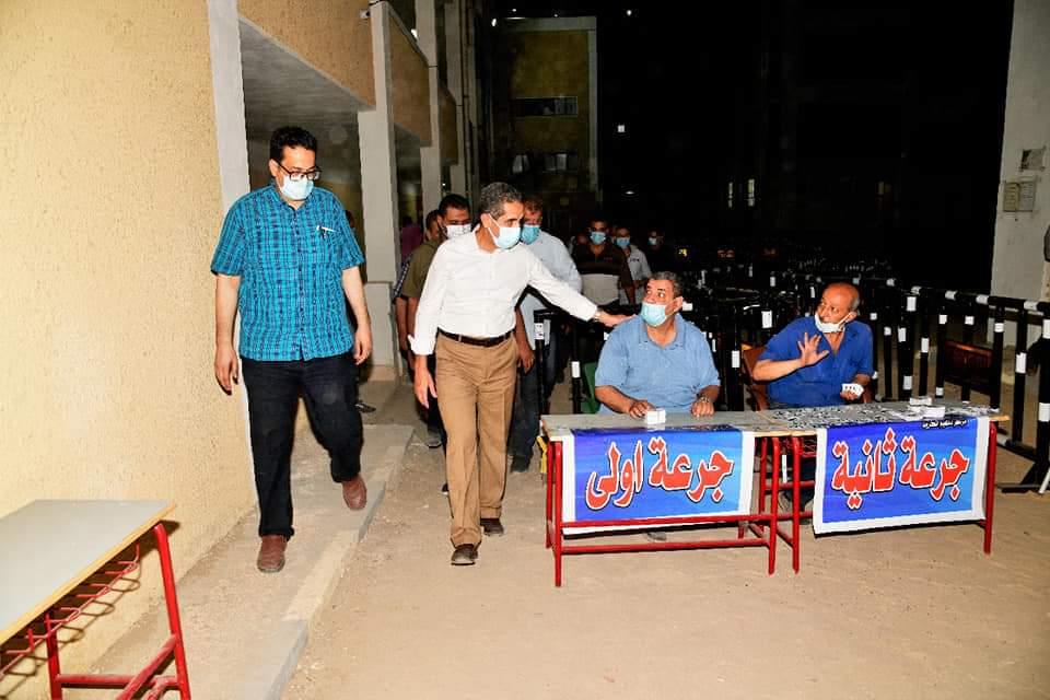 تابع مساء اليوم الدكتور طارق رحمي محافظ الغربية، تجهيز مدرسة الجهاد الابتدائية، يحي ثان طنطا ، لاستقبال المواطنين المسافرين الراغبين في تلقى لقاح فيروس كورونا المستجد،