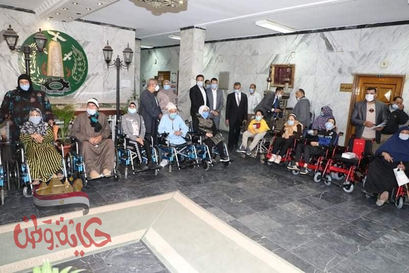 محافـظ المنوفية يسلم 13 كرسى كهربائى ودراجة بخارية