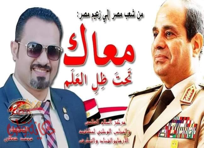 وأشار مستكملا نعم للاستقرار والأمن والأمان الذي تنعم به البلاد نعم لمواصلة مسيرة التنمية والمشروعات العملاقه التي ملئت كل شبر في مصر نعم للالتفاف حول السيد الرئيس عبدالفتاح السيسي قائد مسيرة التنمية نقول له سر على بركة الله ونحن خلفك نبايعك ونؤيدك تحيا مصر وعاش شعبها محفوظا من كل مكروه وسوء نعم للتكاتف ومساندة الرئيس لا للخونة ولا للشائعات المغرضة وإشاعة الفوضى ولا والف لا لدعوات التظاهر حمى الله مصرنا من كيد الكائدين وخيانة الخائنين ونقول للسيد الرئيس من قلوبنا بندعي لك الله يعينك لا للتظاهر لا لحروب الجيل الرابع لا للفوضي..