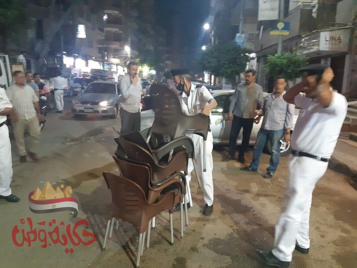 المحلات والباعة الجائلين بالميادين العامة والشوارع الرئيسية بالمدينة واسفرت الحملة عن رفع 400 حالة رفع إشغال وهدوء تام للحالة الأمنية