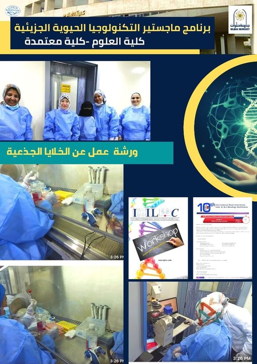 أوضح الاستاذ الدكتور عماد أبو الدهب أن ورشة العمل التي شارك بها طلاب كلية العلوم شملت محاضره نظريه تضمنت التعريف بالخلايا الجذعية وانواعها والتطبيقات العلاجيه للخلايا الجذعية وايضا تضمنت ورشة العمل تدريب علي كيفيه عزل الخلايا الجذعية الوسيطة المتعددة من نخاع العظام للفئران الالبينو بهدف تزويد طلاب الدراسات العليا بضبط القواعد المتبعة فى معمل زراعة الخلايا والانسجة والتعرف على قواعد التعقيم والاجهزة المتخصصة وطريقة عزل النخاع وفصل الخلايا الجذعية وزراعتها وكيفية التعرف عليها وطريقة حفظها، وذلك حرصا من إدارة برنامج ماجستير التكنولوجيا الحيوية الجزيئية علي تقديم خدمة تعليمية متميزة للطلاب وفقاً لمعايير الجودة المحلية والإقليمية وذلك من خلال إكساب الطلاب المهارات العملية المتنوعة في مجال الخلايا الجذعية ورفع قدرة الطلاب للمنافسة في سوق العمل.