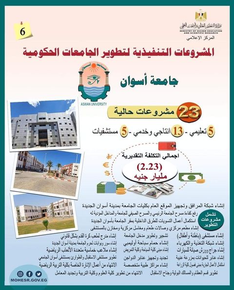مشروعات بجامعة أسوان بتكلفة 2.23 مليار جنيه