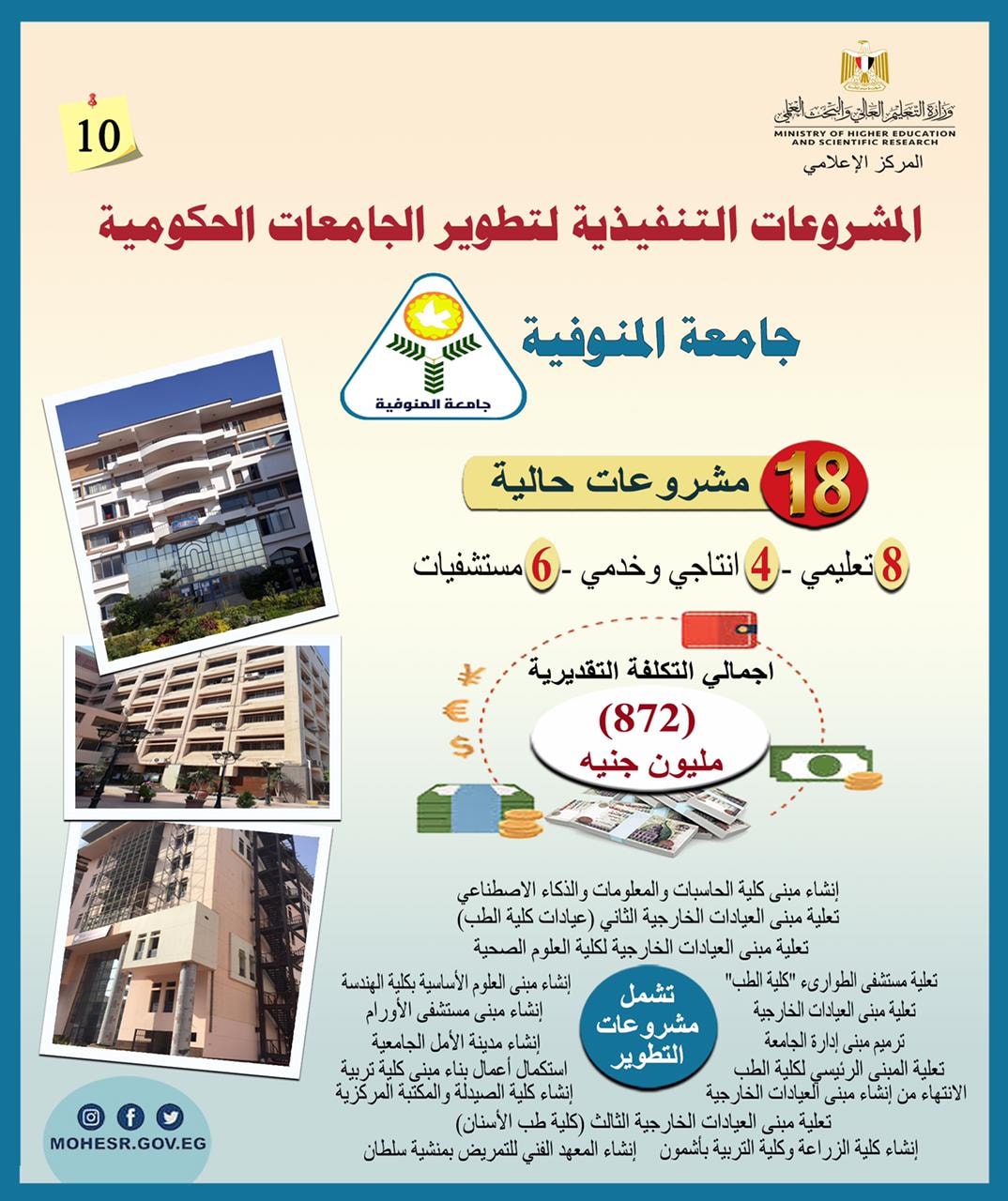 مشروعات بجامعة المنوفية بتكلفة 872 مليون جنيه