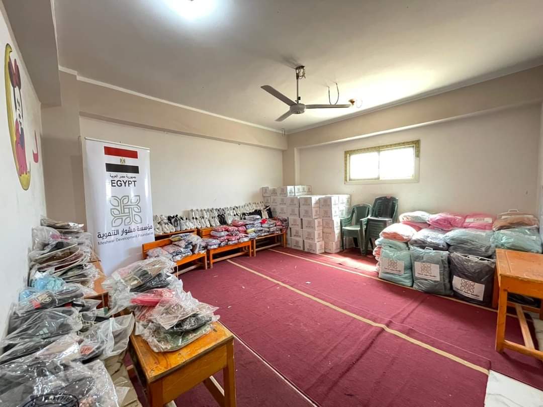 والملابس والأغطية والأحذية والأجهزة المنزلية على الأسر الأولى بالرعاية بقرى المعايشة