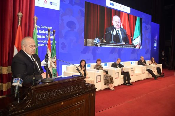 واستعرض الدكتور محمد الخشت، خلال كلمته، تقريرًا حول أهم الإنجازات والمستجدات التي تمت بوحدة مناهضة العنف ضد المرأة بالجامعة خلال الـ4 سنوات الماضية، ودورها في التوعية بقضايا المرأة، ونشر ثقافة مناهضة العنف ضد المرأة، وتقديم الدعم القانوني والنفسي للفتيات والسيدات اللاتي تعرضن للعنف داخل الجامعة، وتوفير بيئة تعليمية آمنة للفتاة والمرأة داخل الحرم الجامعي، وذلك في إطار استراتيجية النهوض بالمرأة 2030، والاستراتيجية الوطنية لمناهضة العنف.