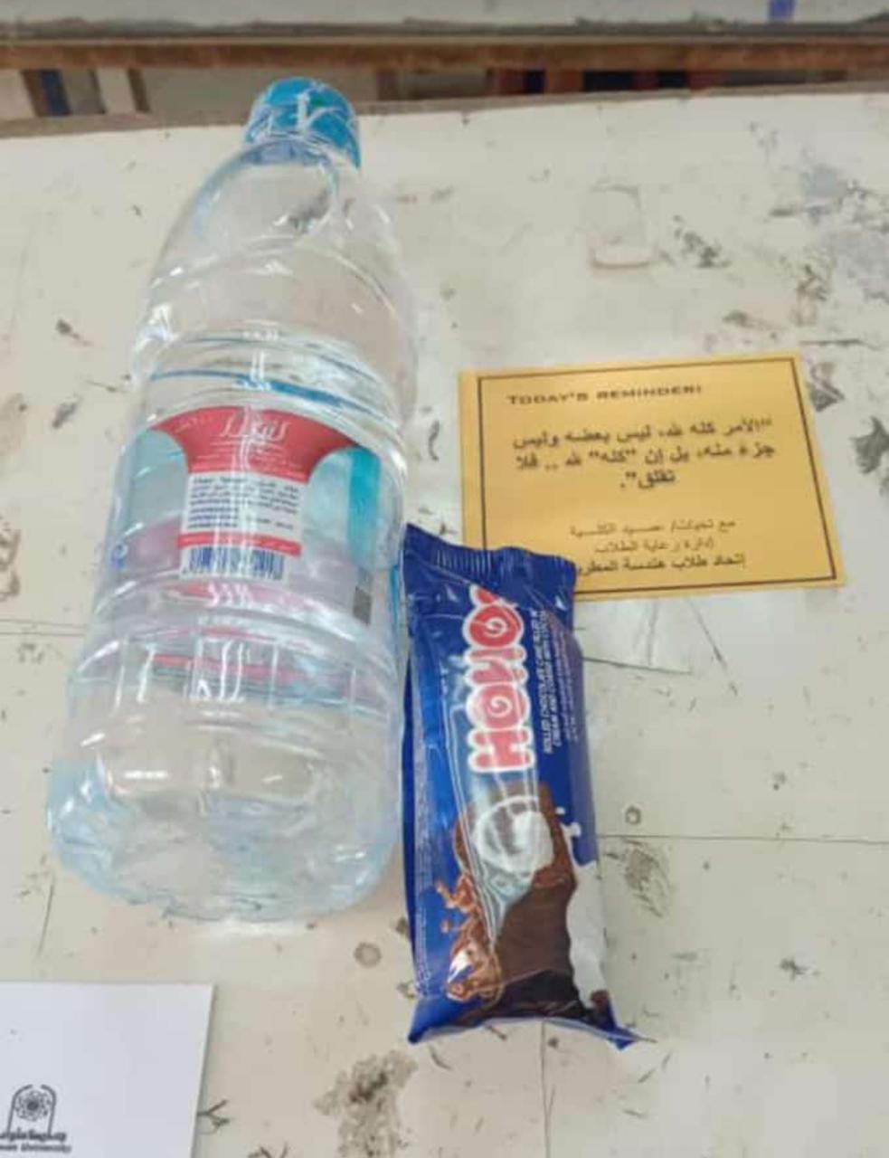 مع بداية امتحانات نصف العام كلية هندسة المطرية توزع الحلوي والمياه المعدنية علي الطلاب