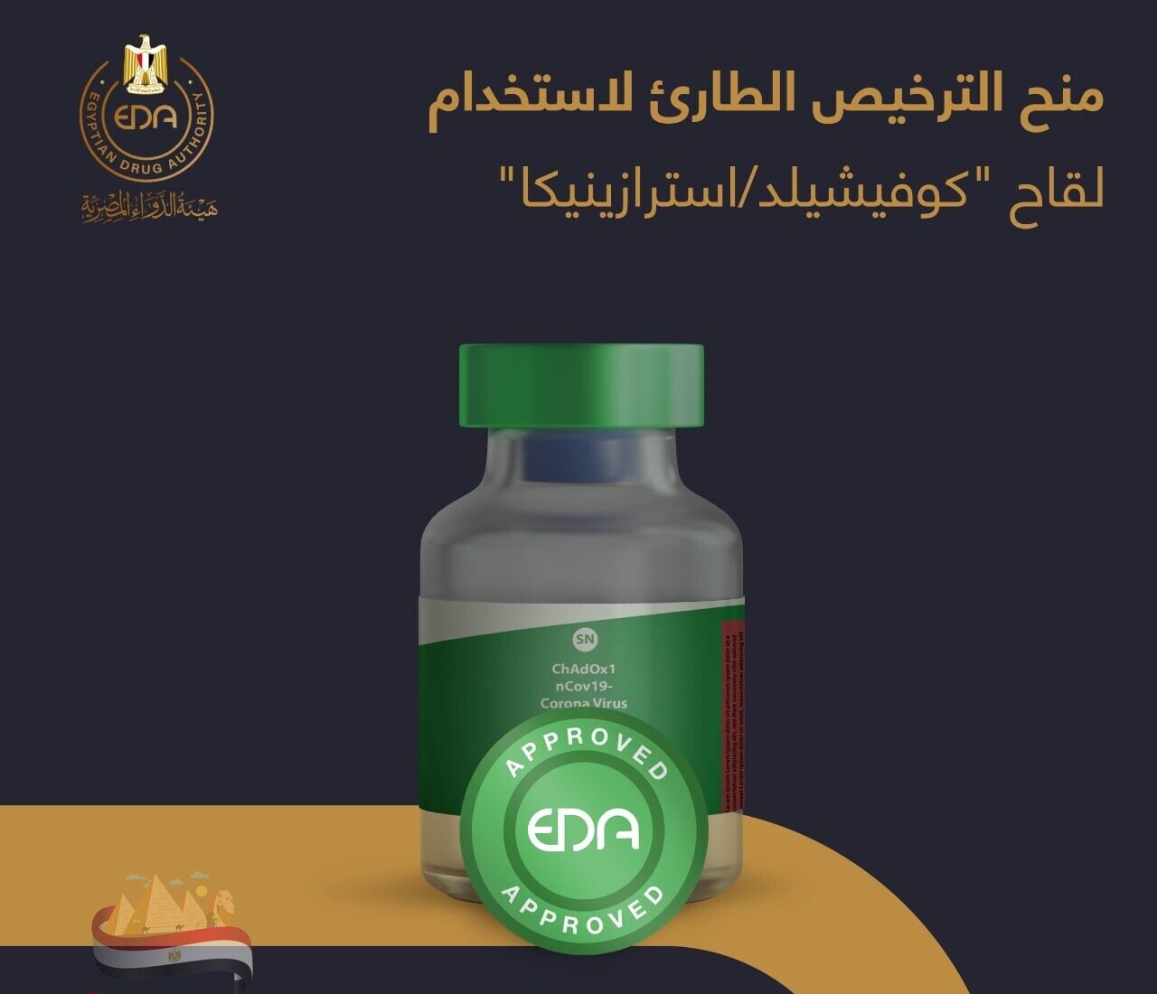 في إطار مجهودات الدولة لاحتواء عدوى فيروس كورونا المستجد، وتوفير اللقاحات التى يثبت فاعليتها لمكافحة الفيروس، والعمل على توفيرها لكافة المواطنين، وفى ضوء حرص هيئة الدواء المصرية على اتباع كافة المعايير العالمية والمحلية المعتمدة من أجل الحفاظ على صحة وحياة المواطن المصري، والحصول على لقاحات آمنة وفعالة وذو جودة عالية؛ أعلنت هيئة الدواء المصرية منح الترخيص الطارئ لإستخدام لقاح “كوفيشيلد/استرازينيكا”.
