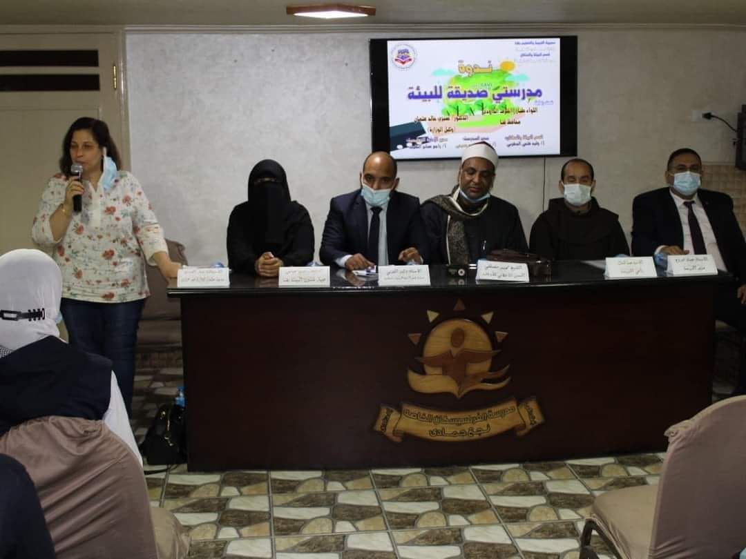 كما ادار الأستاذ وليد المغربي وكيل قسم التربية البيئية والسكانية والصحية بإدارة نجع حمادي التعليم حلقة نقاشية للطلاب والطالبات عن دورهم في الحفاظ على البيئة مثل بدائل الأكياس البلاستيكية و كيفيه إعادة تدوير الأقمشة و زراعة الأشجار و المسطحات الخضراء ."ندوة" بعنوان