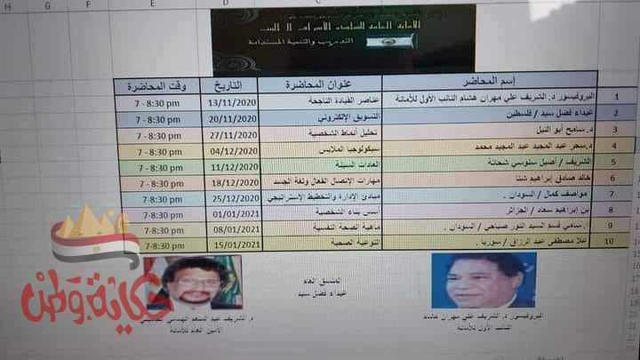 وذلك من خلال التدريب والتنمية المستدامة بقيادة البروفيسور دكتور على مهران هشام وذلك بدأ ، من يوم الجمعة الموافق 13/11/2020 ستكون أول محاضرة علي جروب التدريب و التنمية المستدامة بتقنية الواتس آب تبدأ المحاضرة الساعة 7 مساء بتوقيت القاهرة الساعة 6 مساء بتوقيت بلجيكا ..المحاضرة الأولي عن عناصر القيادة الفعالة وإعداد القائد الناجح …للبروفيسور الدكتور الشريف علي مهران هشام … كما ، إن هذا الجروب..((.التدريب والتنمية المستدامة. )) لا يهدف لربح أولدعاية أو لتسويق أو لشهرة .. ولكنه تحت مظلة ورعاية الأمانة العامة لسادة الأشراف آل البيت في مصر والعالم
