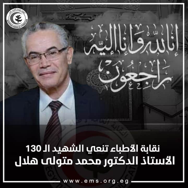 تنعي النقابة العامة للأطباء الشهيد الأستاذ الدكتور محمد متولى هلال مدير مستشفى شبين الكوم التعليمى السابق والذي توفي إثر إصابته بفيروس كوڤيد 19 .