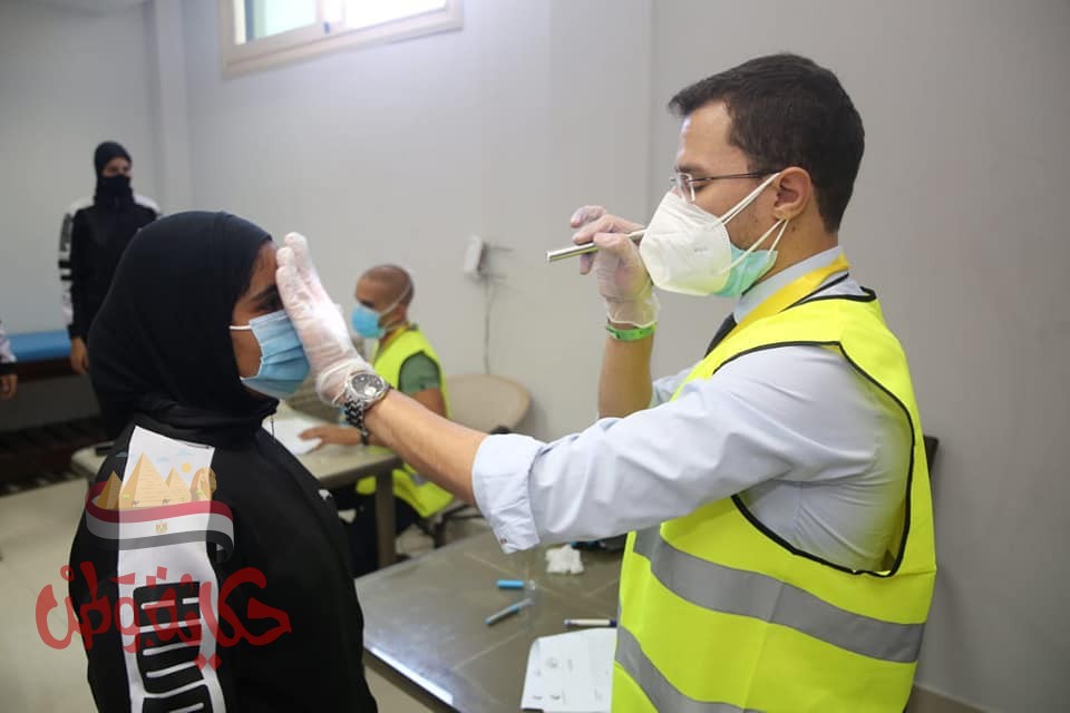 كما تم استبيان الحالة العامة الصحية من حيث الادوية او العمليات التي تمت من قبل والتاريخ الطبي للمشارك، وكذلك اتخاذ كافة الإجراءات الاحترازية لمواجهة فيروس كورونا بنشر أجهزة كشف درجات الحرارة عن بُعد على كل الأبواب لقياس درجات الحرارة واستبعاد من يثبت ارتفاع درجة حرارتهم، كما يتم توفير المطهرات فضلاً عن أقنعة الوجه.