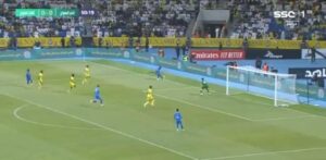 يضغط النصر و ينجح فى تسجيل التعادل فى الدقيقة ال 75 عن طريق النجم البرتغالى كريستيانو رونالدو الذى جائته كرة عرضية من ناحية اليمين .