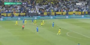 تنتهى المباراة فى وقتها الأصلى و يحتكم الفريقان للوقت الإضافى و سرعان ما يمارس رونالدو هوايته فى الدقيقة السابعة من الشوط الإضافى الأول من متابعة لكرة سددها زميله الجناح الأيسر الإيفوارى سيكو فوفانا إرتدت من عارضة محمد العويس حارس مرمى الهلال .