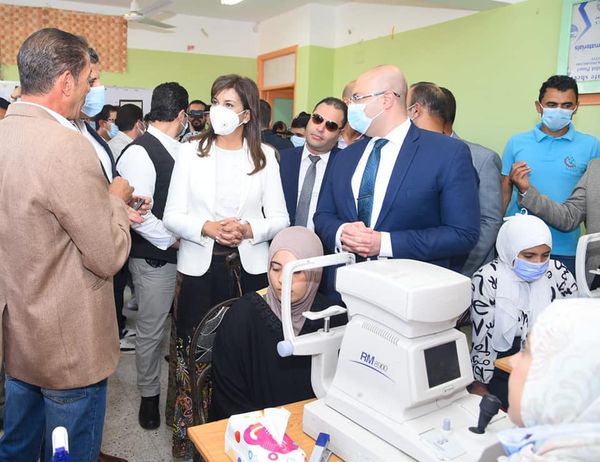 وزيرة الهجرة ومحافظ بني سويف يتفقدان القافلة الطبية في قرية الحرجة بمركز ناصر