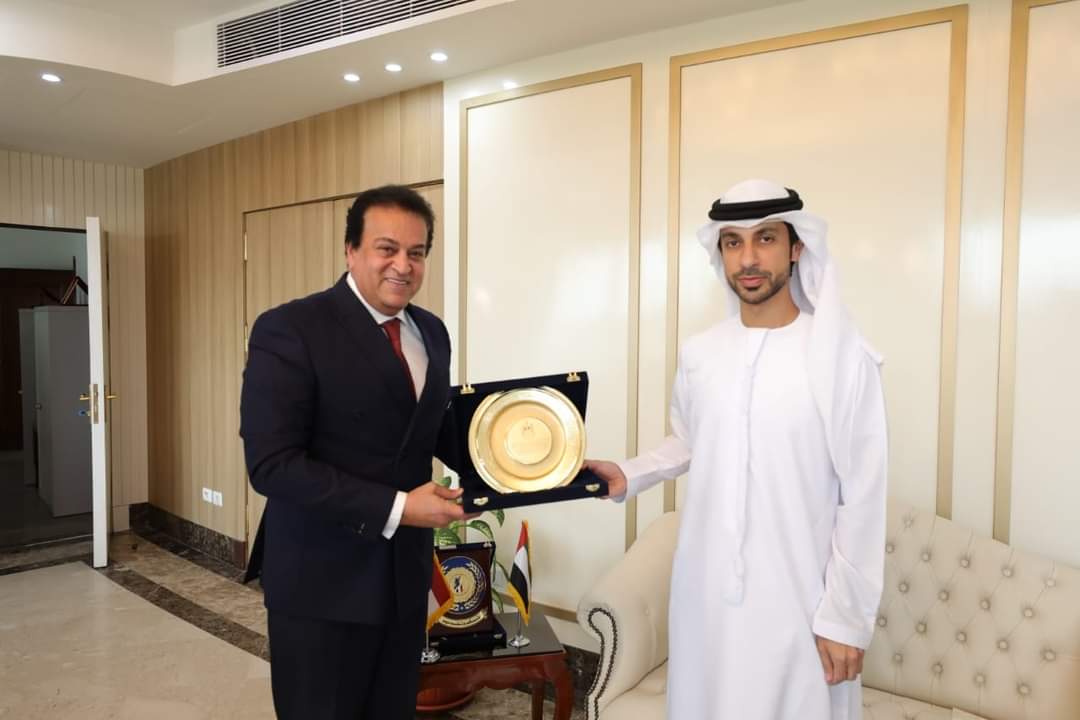 جاء ذلك خلال لقاء وزير التعليم العالي بالشيخ الدكتور عمار بن ناصر المعلا الملحق الثقافي لدولة الإمارات العربية المتحدة لدي مصر، بحضور الدكتور محمد أيمن عاشور نائب الوزير لشئون الجامعات والدكتورة رشا كمال رئيس الإدارة المركزية لشئون الطلاب الوافدين.