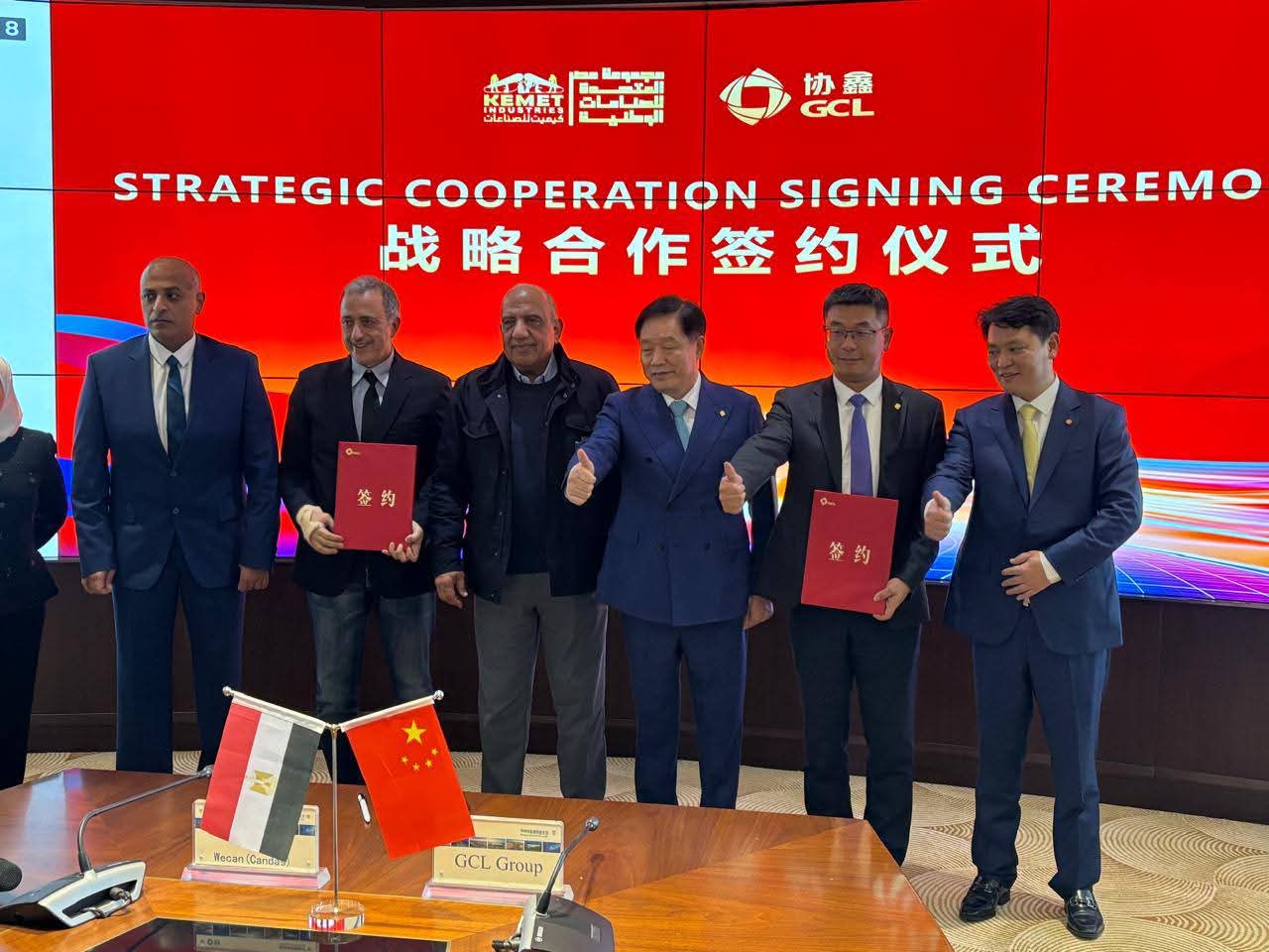 وبناء القدرات، والابتكار التكنولوجي، وقام بالتوقيع عن شركة كيميت المهندس أحمد العبد رئيس الشركة، وعن الشركة الصينية، كيو شوليانج، رئيس الشركة.