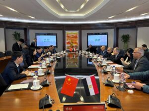 برئاسة ذهو جونج شانج، المالكة لشركة “سوتشو ويتشنغ“ الرائدة فى مجالات تصنيع خلايا ووحدات الطاقة الشمسية، وذلك بمشاركة مسئولي شركة كيميت المصرية