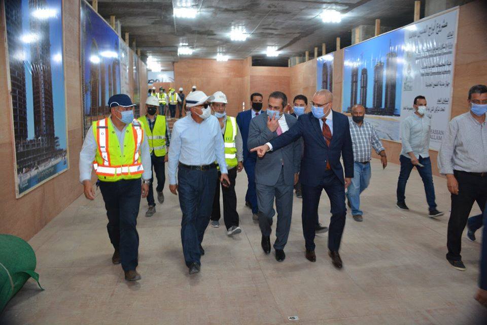 واستهل وزير الإسكان، ومرافقوه، زيارتهم لمدينة العلمين الجديدة، بتفقد منطقة الأبراج الشاطئية، حيث يجري تنفيذ أعمال صب الخوازيق لإنشاء 5 أبراج جديدة، بجانب تنفيذ أعمال التشطيبات وتركيب الواجهات للأبراج التي يجرى تنفيذها (تضم 15 برجاً، بارتفاعات تصل إلى 42 دورا)، وتم الانتهاء من صب الدور الأخير بعدد منها.